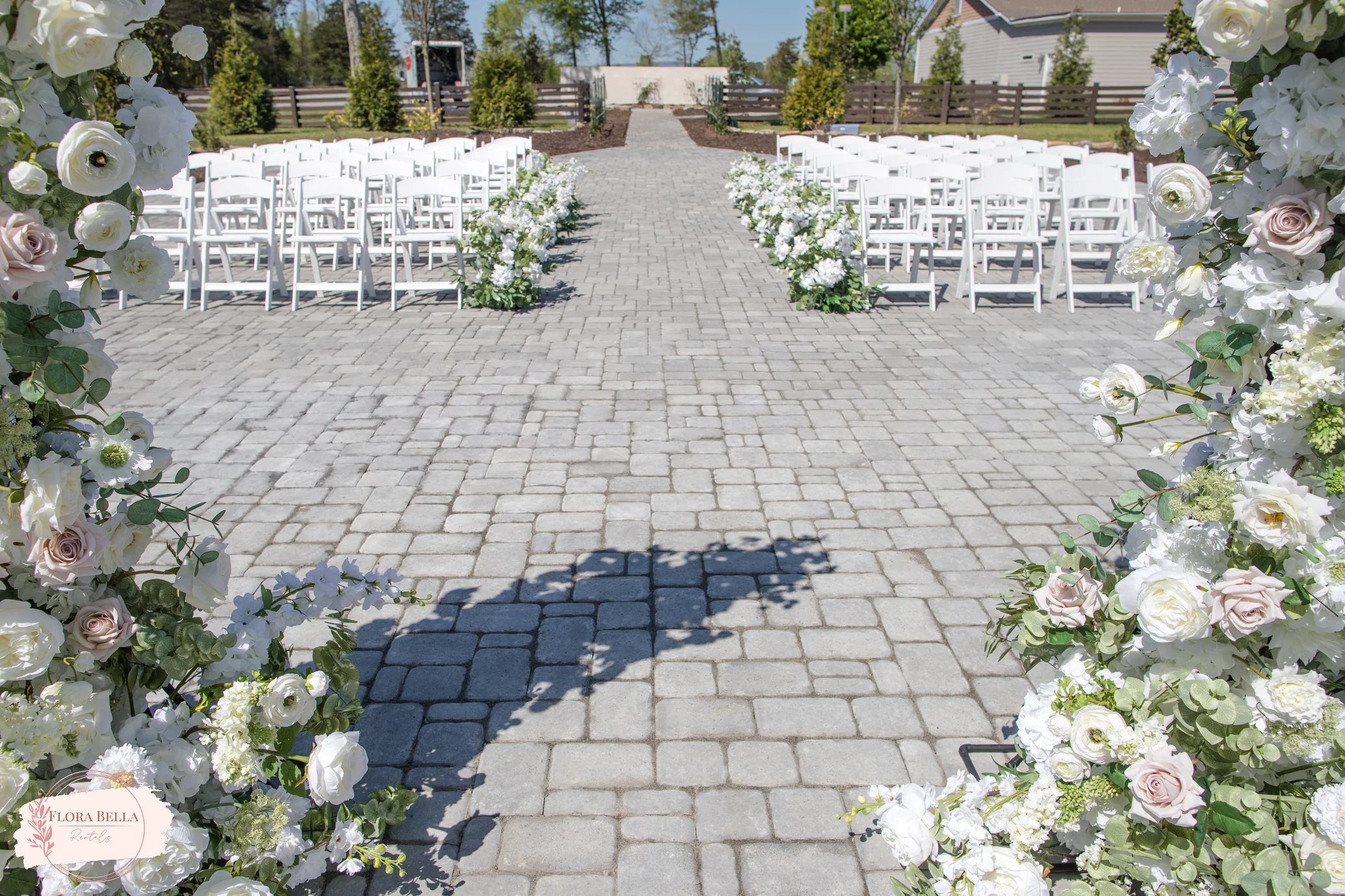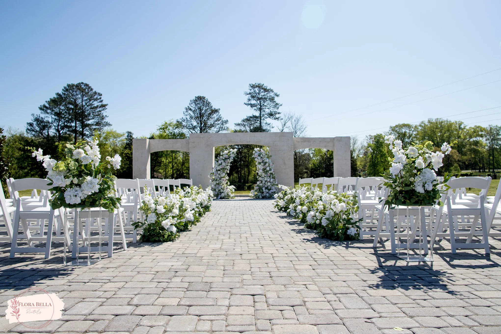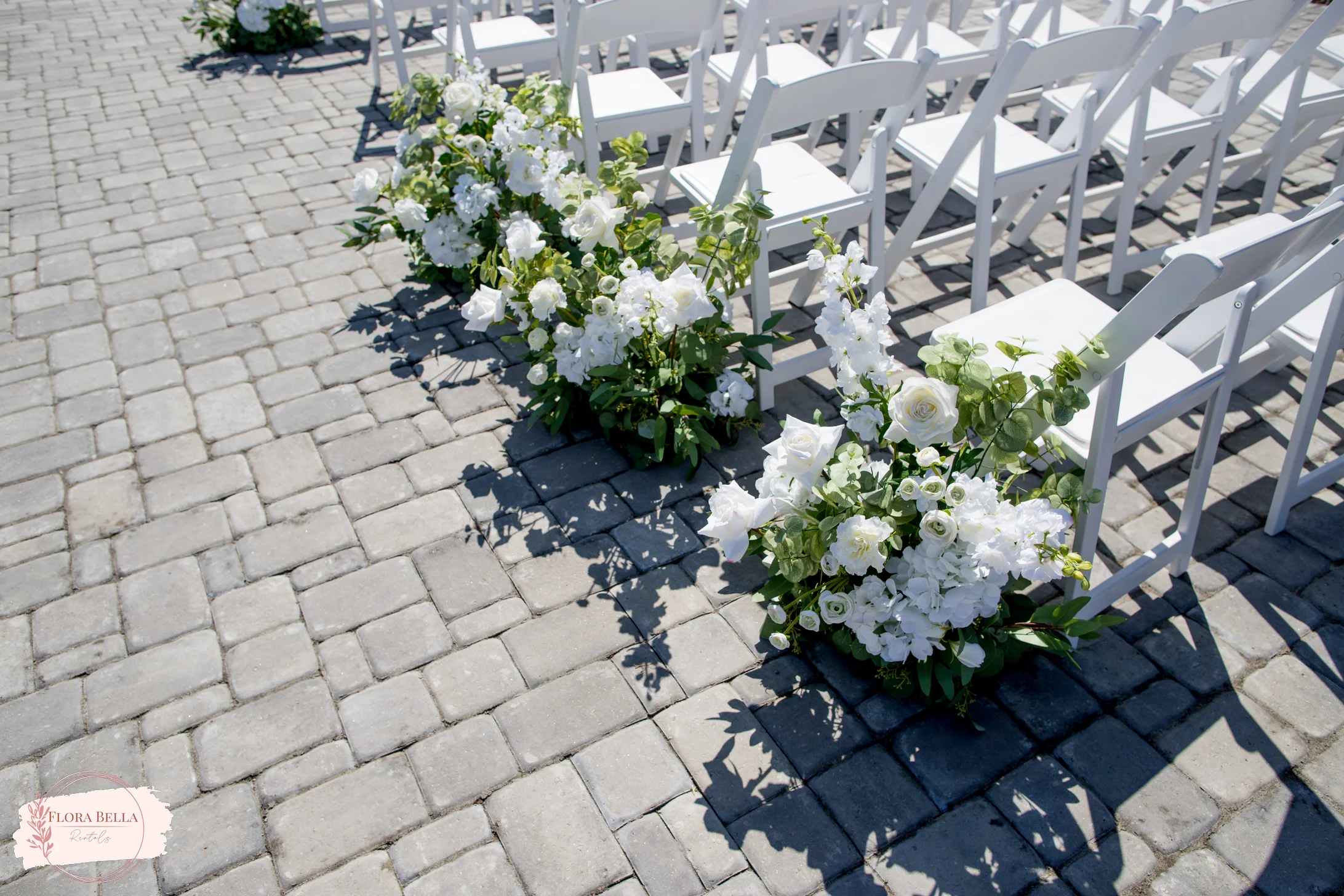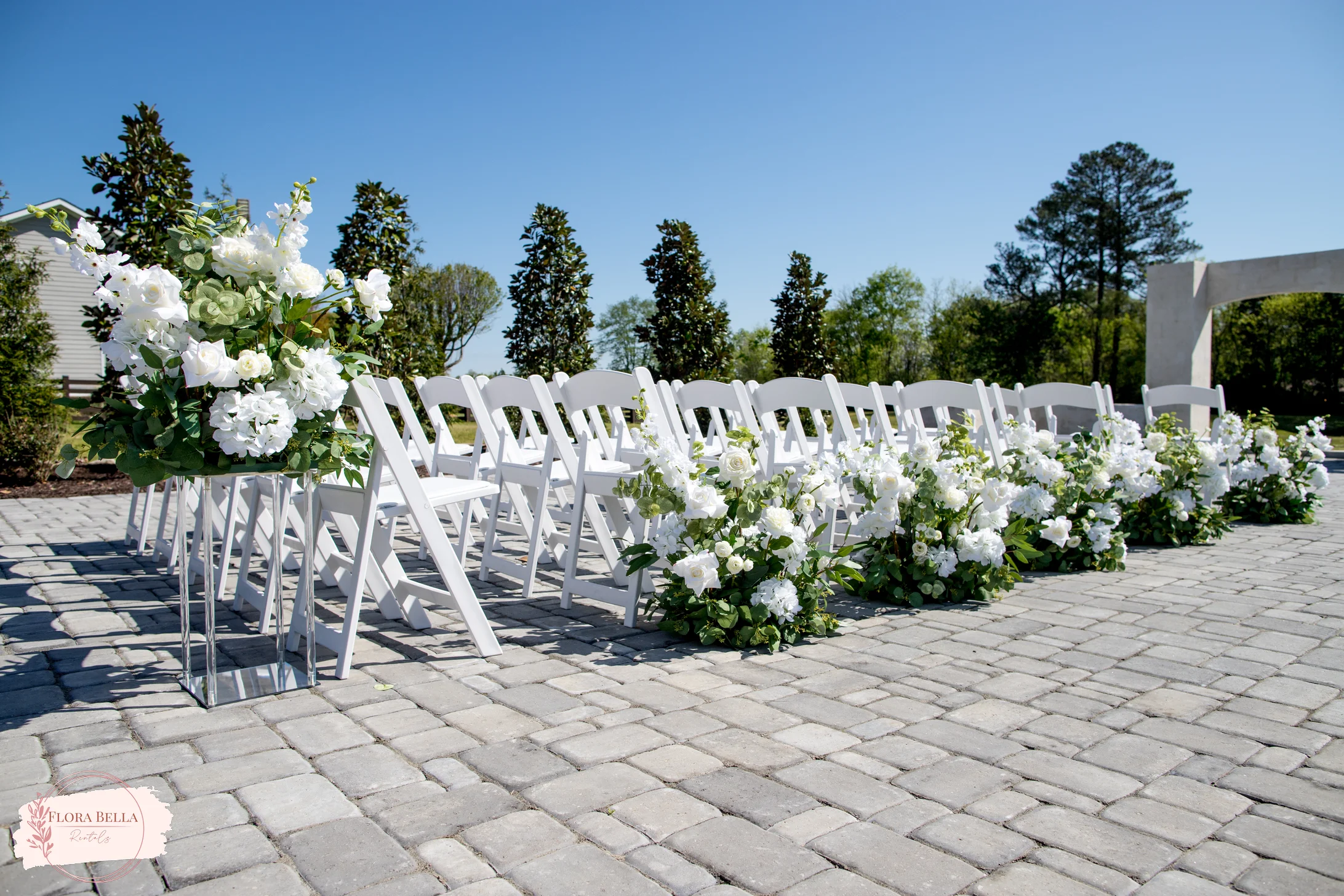 Gwyneth is our most versatile set of accessory flowers featuring beautiful, creamy shades of white. Showcasing a variety of white roses, delphinium, ranunculus, and lysianthus with greenery found across our collections, these neutral flowers will coordinate well with a variety of arches and backdrops.